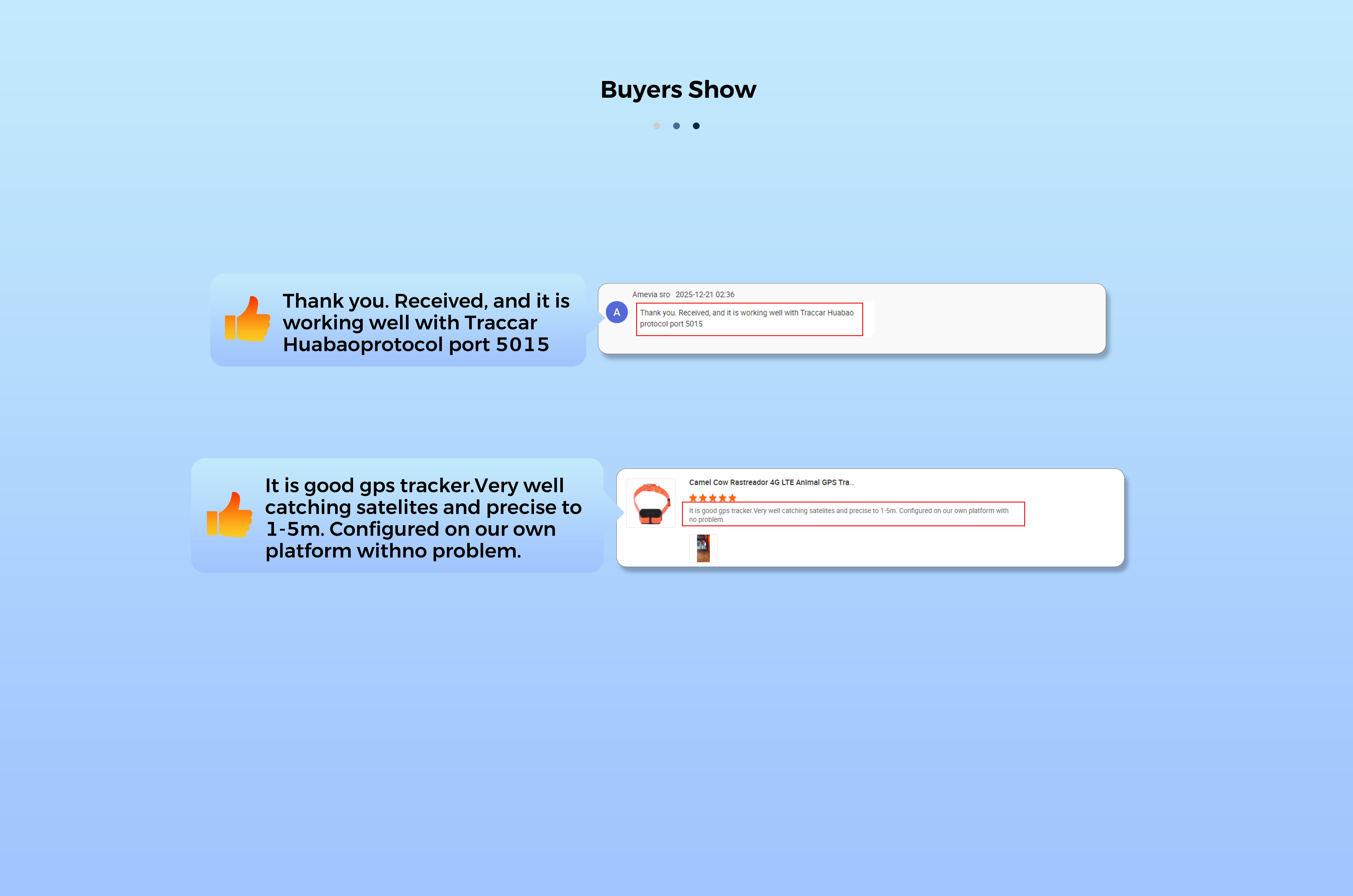 'Thank you. Received, and it is working well with Traccar Huabaoprotocol port 5015.It is good gps tracker.Very well catching satelites and precise to 1-5m. Configured on our own platform withno pr...